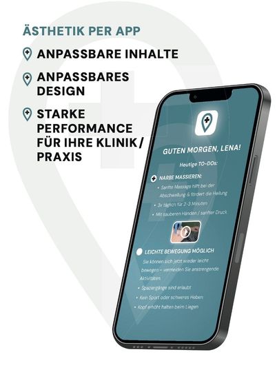 Mit MediCentra® steht erstmals eine smarte Patienten-App für die ästhetische Chirurgie zur Verfügung, die es den behandelnden Kliniken ermöglicht, ihre Patienten vom ersten Beratungsgespräch bis weit über die Behandlung hinaus sicher, diskret und punktgenau zu betreuen. Patienten laden sich MediCentra® im Rahmen der Erstberatung kostenlos herunter und erhalten wichtige Hinweise zur Vorbereitung, zum Behandlungstag und alle Informationen für eine erfolgreiche Nachbehandlung – immer zeitgerecht per PUSH-Nachricht auf das Smartphone – als Text, als Bild oder als Video. Das Ende lästiger Hand-outs, Zettelwirtschaften und Unklarheiten in der Phase der Behandlung und des Follow-ups.